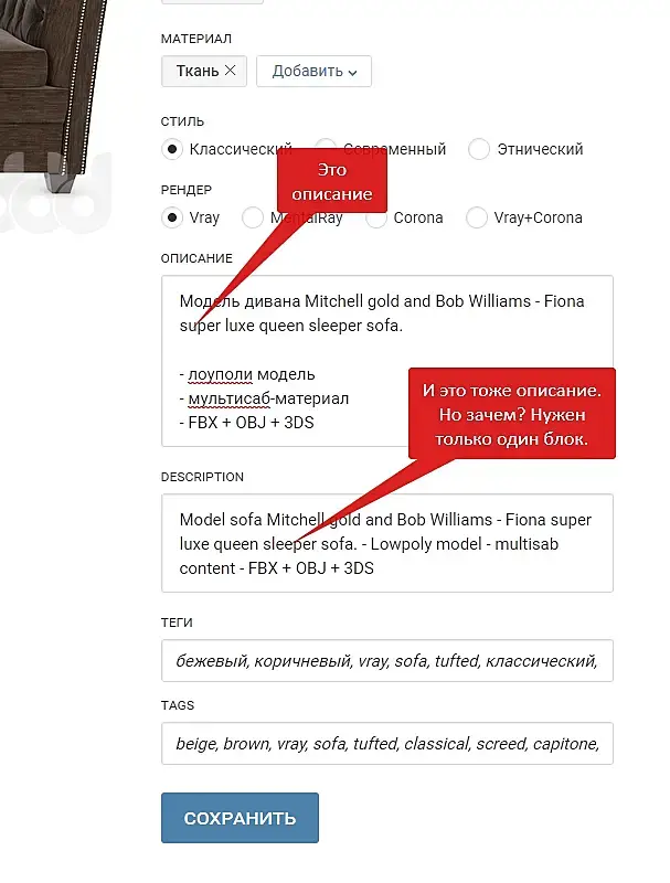 На 3дскае есть автоматический переводчик. Зачем тут на странице этот мусор из лишних полей? Дизайн такой?