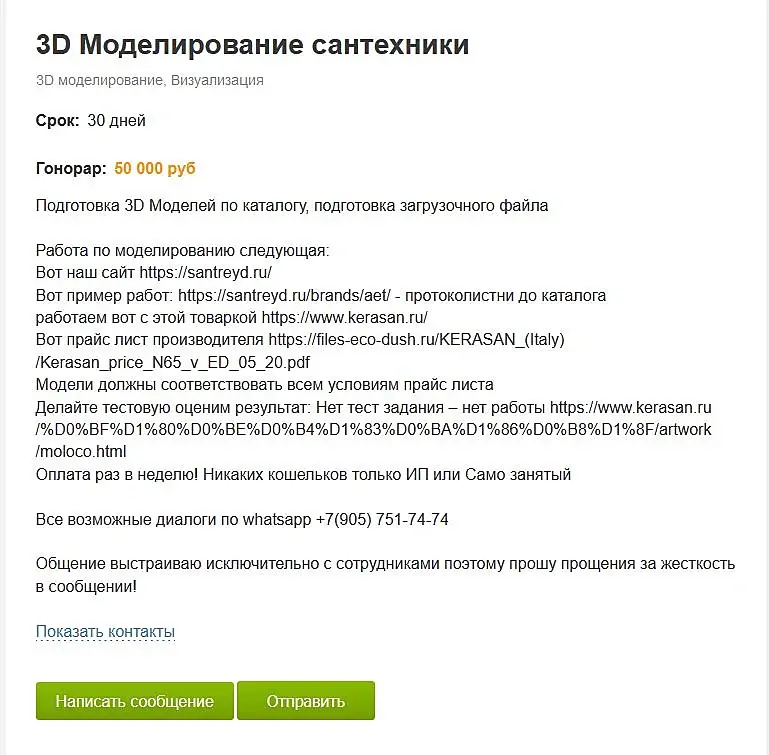 Да и что? если там типовые узлы и прочая ерунда чего там чертить то. Все в заготовках у нормальных спецов. С чего ты решил что там уникальность космическая. И уровень виза тоже не гора нужна. Рутинная работа , дешманская цена. Все ровно.