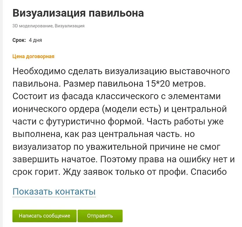Если считать 5 помещений по 4 ракурса (без клоузапов), то это выходит 1000р за один ракурс ))) Моделить табуретки и картины в рамках для 3дд это золотая жила по сравнению с такими "вакансиями"