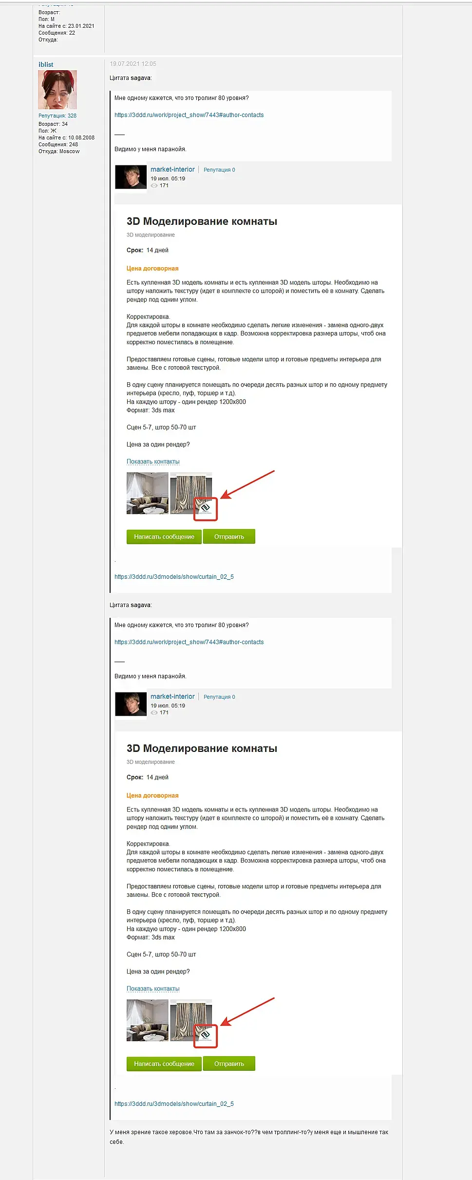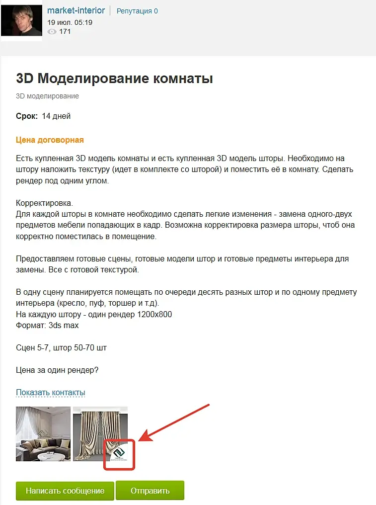 Абсолютно невменяемый чел, связался сделал ему тестовый рендер он сказал типо "С таким качеством мне за 200 рублей предлагают, вас обошел Казахстан" т.е. чел настолько невменяем что он не понимает что такое тестовый рендер. Хотя я так и написал "ТЕСТОВЫЙ РЕНДЕР"