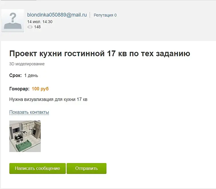 ты серьезно думаешь что я каждому встречному - поперечному буду запускать финальные рендеры? А потом он скажет чуть правее, левее, светлее, темнее. Как бы там надо предметы интерьера менять. Дурачки рендерящие в качестве и потом присылающие это заку без предоплаты потом отписываются в черном списке с нытьем типа "Я верил в лучший мир а меня НАЕ"