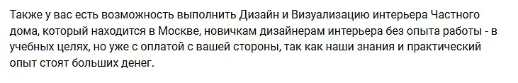 Какое великодушие , к нам снизошли сами боги дэзигна которые позволят сделать им проект , АЖНО целый дом в самой Москве ! За деньги ! Которые вы заплатите им за получения опытнейшего опыта опытных дизайнеров . Тетя походу забыла таблетки принять....