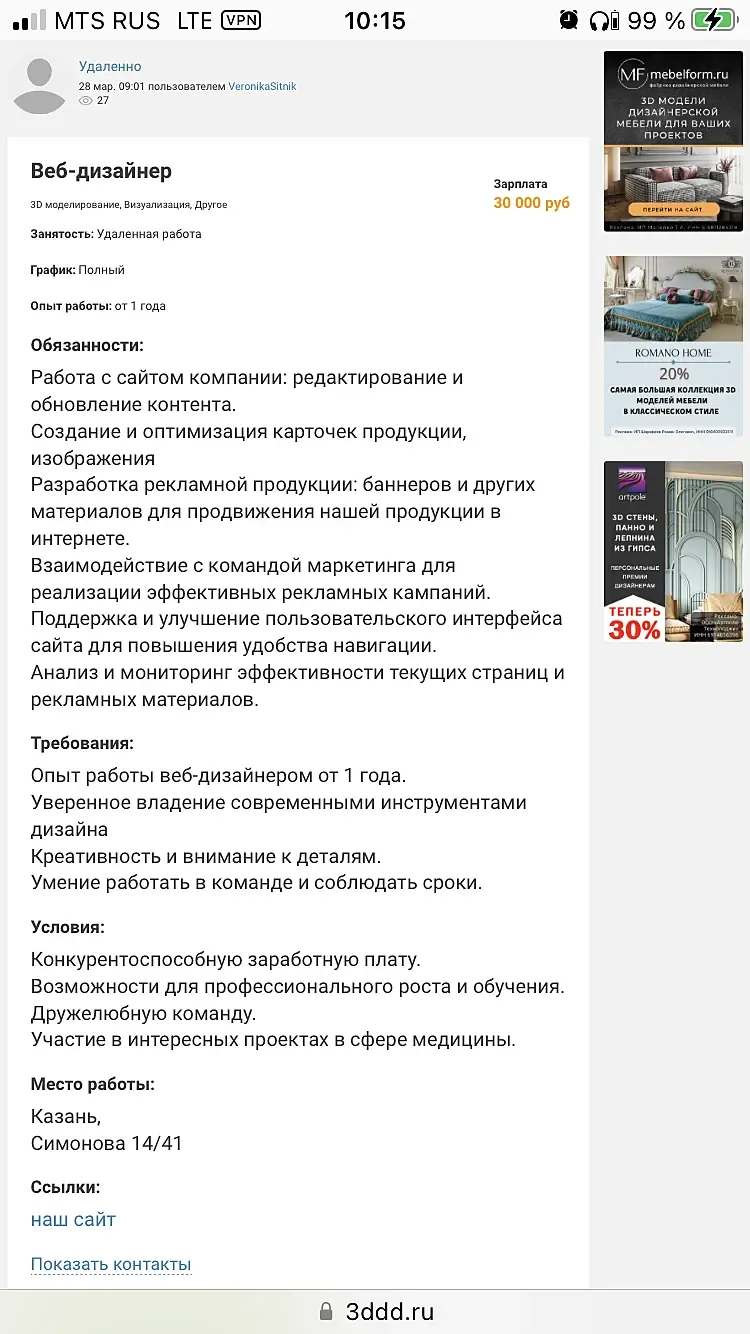 В прошлом году увидел вакансию. В зоопарк нужен был архитектор на проекты благоустройства территории. Удаленка, свободный график. А он у меня от дома 500 метров, ходим туда на детскую площадку часто, дай думаю помогу им с благоустройством. Зашел узнать условия, так там как выкатили требования, я офигел. Надо властелином архитектуры быть в пятом поколении)) Зарплата 30к))) Я говорю, давайте вам бесплатно проект сделаю, дадите мне абонемент на год (он 5к стоил тогда). Говорят, такое нам не надо, нам надо в штат человека, которому начальство будет мозги клевать)