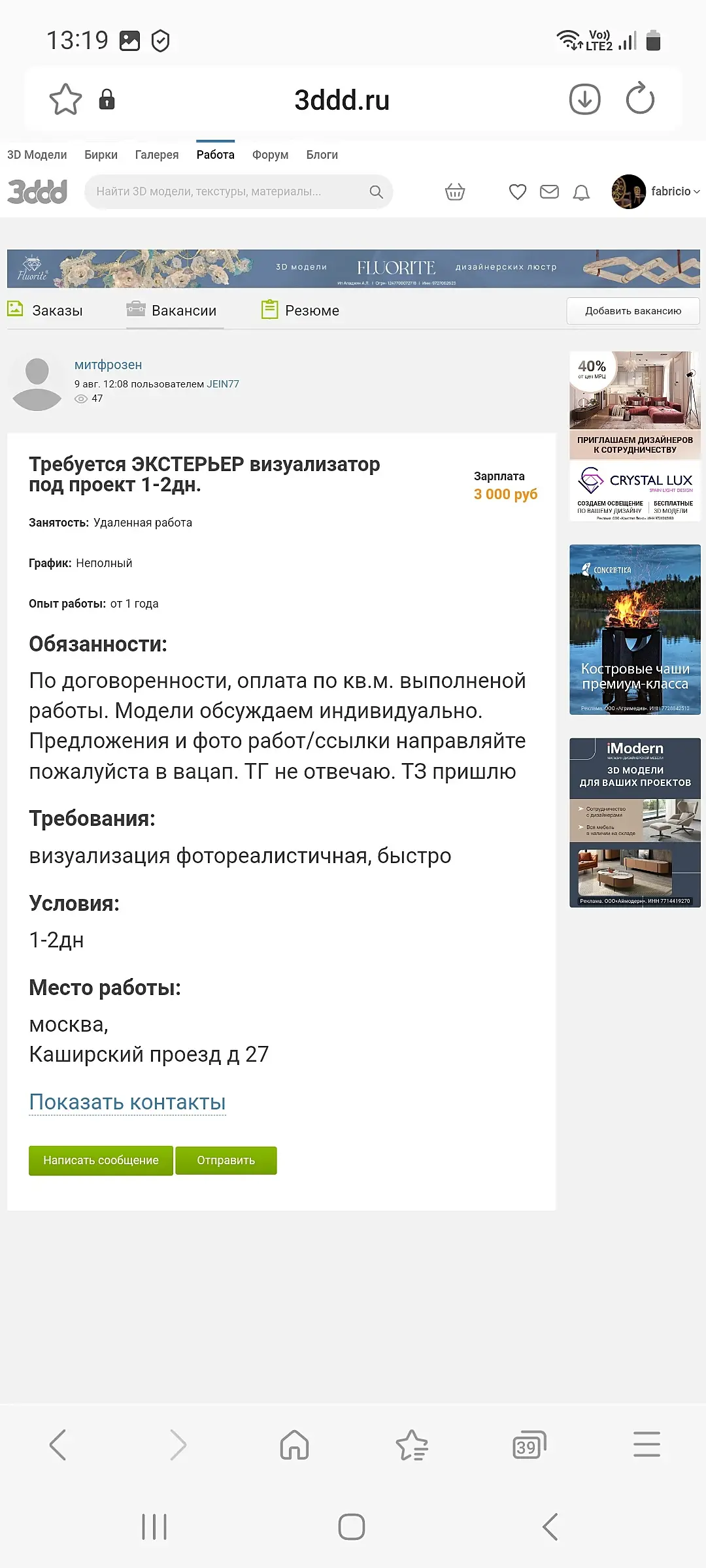 Вот смотрю всю эту тему РАБОТА. "Неадекватные заказы" Это я их так называю..И раз за разом,они все тянуться сюда,на 3ddd за новыми заказами..Чем их сюда манит? Сарафанное радио? Или что то ещё? Что тут сделают почти даром?