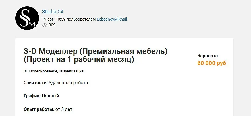 Мб там цена для галочки написана, по факту при разговоре на что договоришься, но от студии 54 действительно смешно видеть такие цифры, вакансия на штатного визера в офис 100к тоже выглядит смешно