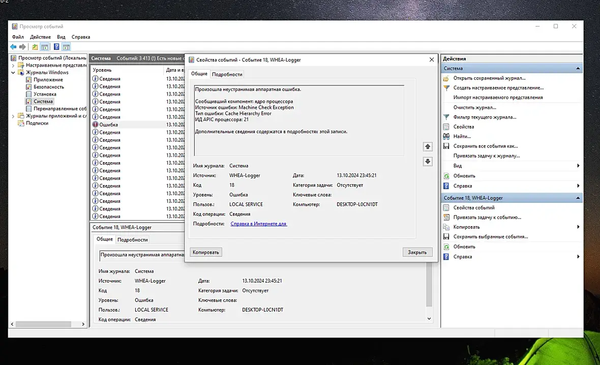 Какая то странная дись начала происходит с компьютером! Некоторое время назад ( может пол года) начал замечать странное поведения компа, мог просто зависнуть и как не реагировать на кнопки, только перезагрузка помогала, или экран уходил в спящий режим и оттуда уже не выходил, только перезагрузка, то есть комп работал, но не на что не реагировал. И вот пару дней назад решил переустановить винду, думаю может эта проблема тоже уйдет, но вот хер, все осталось тоже самое, и даже чаще, и теперь еще появился новый прикол, комп просто перезагружается сам по себе, в журнале событий (ошибка, скину ниже скрин), и так что пока я писал этот текст раз пять такая фигня произошла, поискал решение проблемы и нифига толкового не нашел. Вообще голова кипит не знаю куда копать вообще, где то читал что это с железками что то может быть, с процом. Проц я не разгонял, как и оперативку, в стоке все работало, компу уже почти 3 года, вначале такого вообще не было. Температуры нормальные, да и происходит это даже не в нагрузках, может винда корявая или все таки железо, вообще ноль предположений, если есть кто поможет, даже за вознаграждение, буду очень признателен!!!!!!!!!!!!!!!!!!!!!