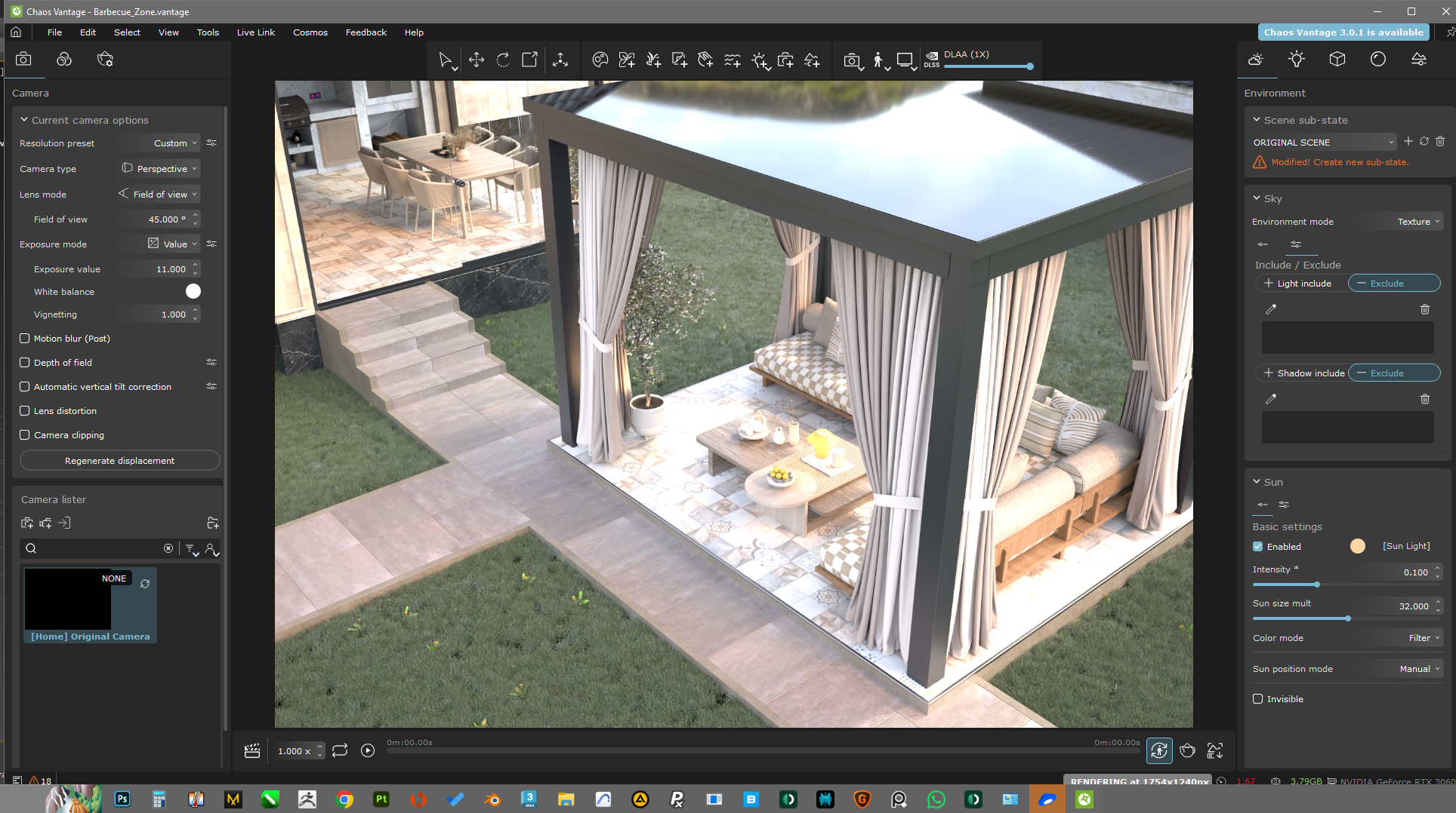 к рендеру да, но рейтресинг в прямом эфире с такой кучей травы ставит карту на колени. Сцену же видеть надо как-то, что бы настроить материалы, зелень, свет...