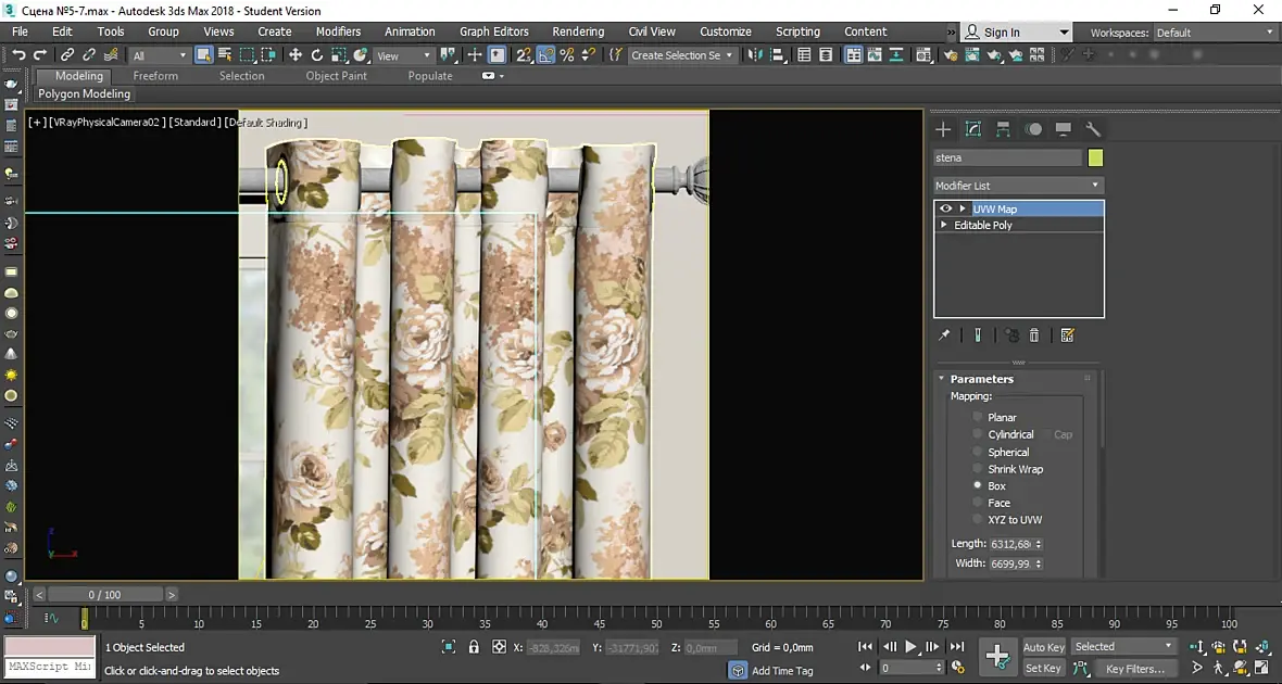 Не могу, я шторы продаю, и мне нужно, чтобы ткань и ее рисунок были корректно переданы, без модификатора UVWXForm рисунок ложиться с неправильными размерами, я использую real world.