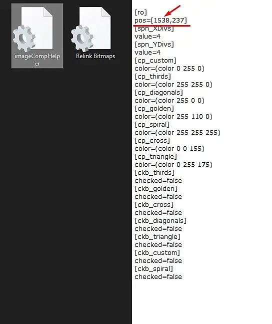 . Изначально я искал этот файл INI, но так его и не нашёл. Тем временем в дебрях проводника я нашёл папку со скриптами. Лежит она по пути C:\Users\*NAME*\AppData\Local\Autodesk\3dsMax\2021 - 64bit\ENU\scripts. Там же есть файл imageCompHelper. Двойным кликом открываешь, во второй строчке pos=[****,****] меняешь значение первых 4х цифр на 0 0 и готово. В следующий раз скрипт появится плюс минус по центру экрана и единожды выскочит окно с кодом. Видимо, это отчёт о внесённых изменениях. Уверен, что таким образом можно восстановить положение и других затерявшихся окон, когда не помогает ALT + ПРОБЕЛ