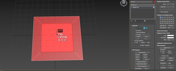Инсерт внутрь, потом удалим внутренний полигон и грани по периметру выдавим вниз