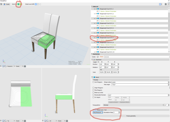 слегка отстала от жизни в Архикаде, потому что вынуждена работать в другой программе, пока меня не было, у Архикада появился Моделпорт (прекрасное изобретение человечества, надо сказать). В связи с этим есть вопрос - сейчас куча производителей предоставляют 3д модели, как правило дерьмового качества, но для архикада в целом сойдут, проблема в том что "как есть" их в модел порт запихнуть не удается, они в нем отображаются сеткой, а не контуром, если отображение ребер отключить в настройках, то модель на развертках заливается назначенным цветом, а контуры исчезают. Пример модели от производителя в приложении. Перемоделивать по-человечески смысла нет никакого. Я пошаманила в 3д максе, конвертнув модель в фбх (оригинал obj), в итоге вроде все получилось, модел порт сожрал, отобразив все как надо без плясок с бубном, но сетка сего творения все равно вызывает внутреннее содрогание. Есть подозрение, что если подобное скормить архикаду в достаточном количестве он начнет крашится и тормозить. Может есть какие-то простые пути ретопологии в Максе, чтобы подобные модели конвертировать во что-то более удобоваримое и заодно облегчать для последующего использования в Архикад? Буду признательна за идеи и подсказки.