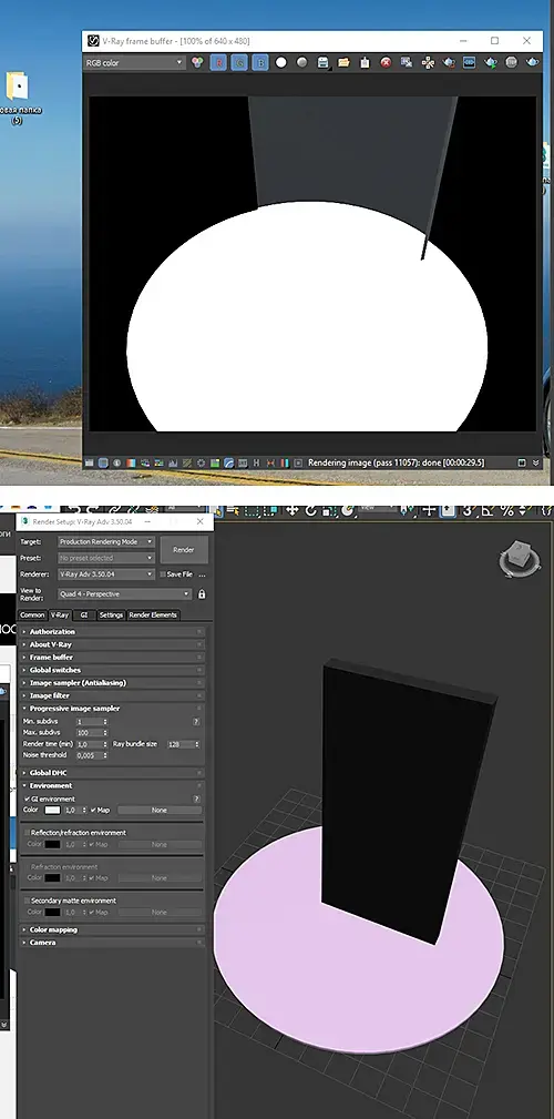 Я новичок. У меня после рендеринга в v-ray вылезает что-то странное, см на первой картинке, на второй то, что рендерю. Это глюк ПО или я что-то не так настраиваю?