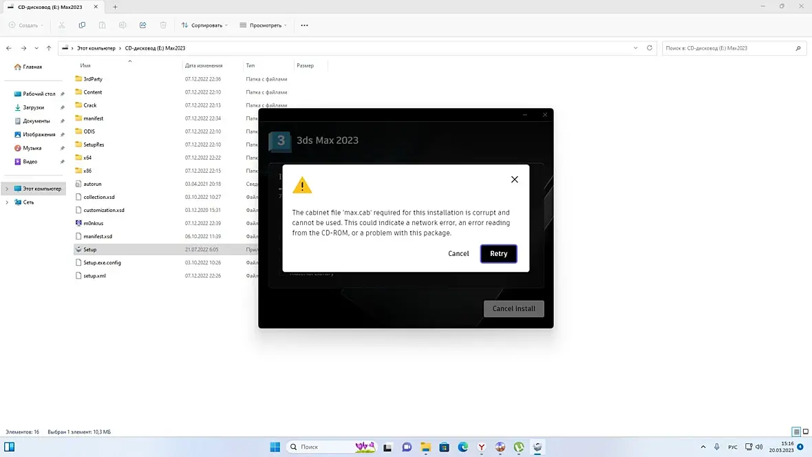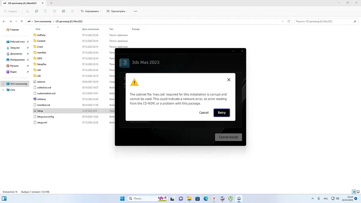 Здравствуйте. Не могу установить 3D MAX, файл с сайта всегда качал этот .всегда он работал.но что-то произошло и я не могу понять в чем причина.Прощу помощи. Пробовал ставить его и на 11 виндовс и на 10 и конвертировал разделы дисков MBR и GPT (ибо думал.может в них причина), но ничего не помогает.