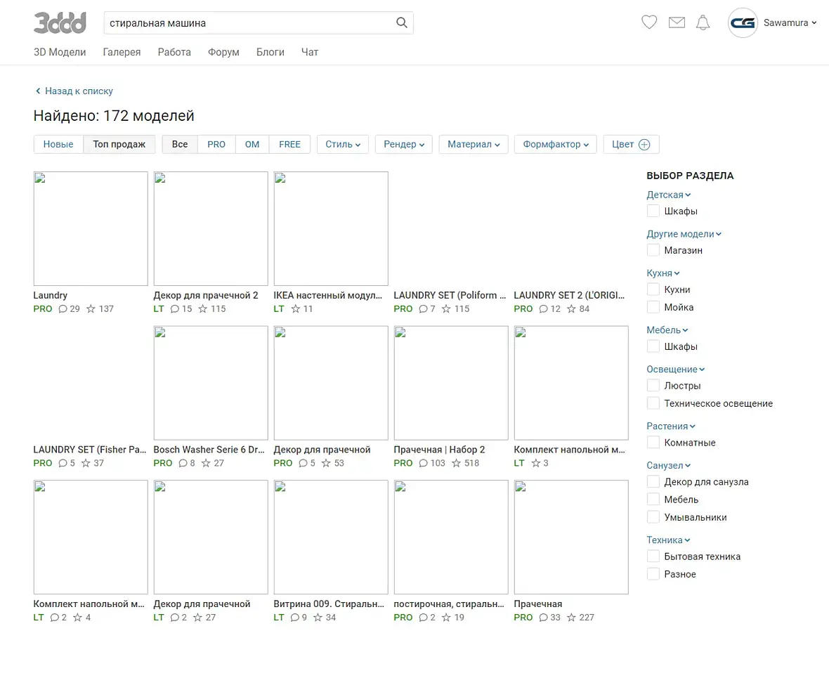 Купленные модели повторяются от странице к странице и некоторые из купленных не показываются вообще при выборе раздела. Если листать страницы не выбирая раздел, то норм. Но находишь нужную странице к 20((