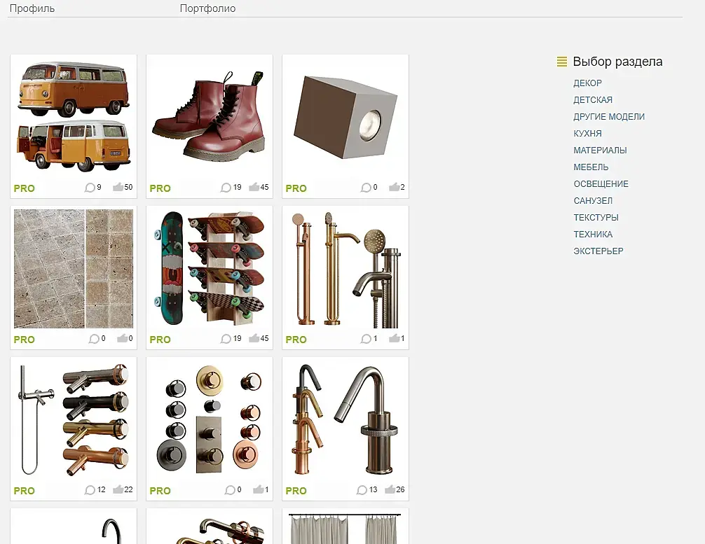 Если поставить галочку и выбрать для показа определенный раздел 3д моделей в профиле, снова съезжает и показывает в три ряда. И галерея тоже в три ряда показывается