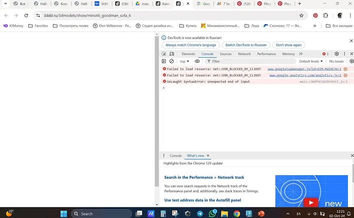 Пожалуйста войдите в инспектор (клавиша F12)-вкладка консоль (console)-пришлите скриншот. Укажите адрес, который открылсям время и часовой пояс на компьютере.
