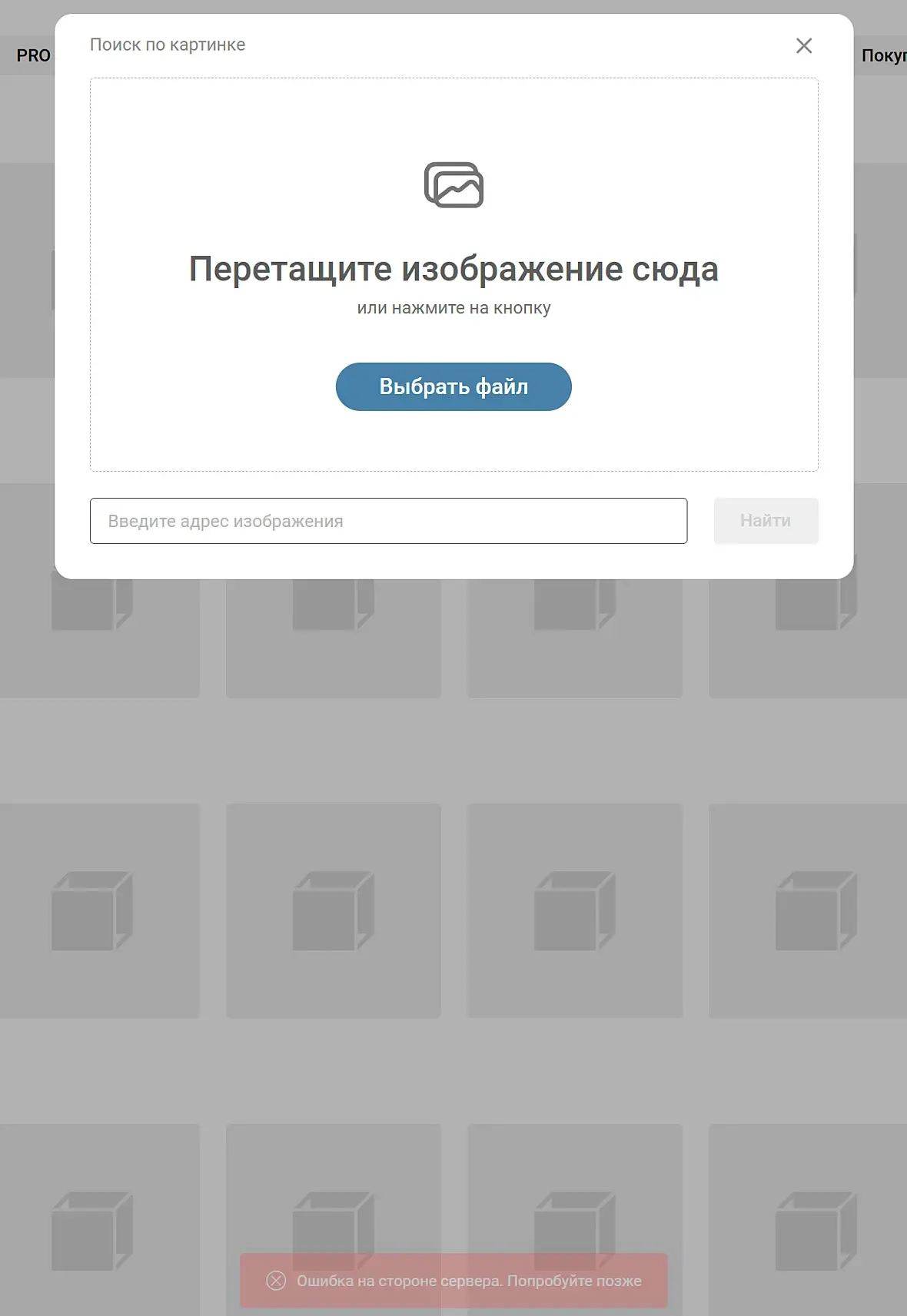 Уже не первый день не работает поиск по изображению, пишет: "Ошибка на стороне сервера". Аналогичная ситуация, когда используешь поиск по картинке в карточке 3d модели - открывается новая страница и ничего не грузится. Прошу что-то с этим сделать, работать невозможно.