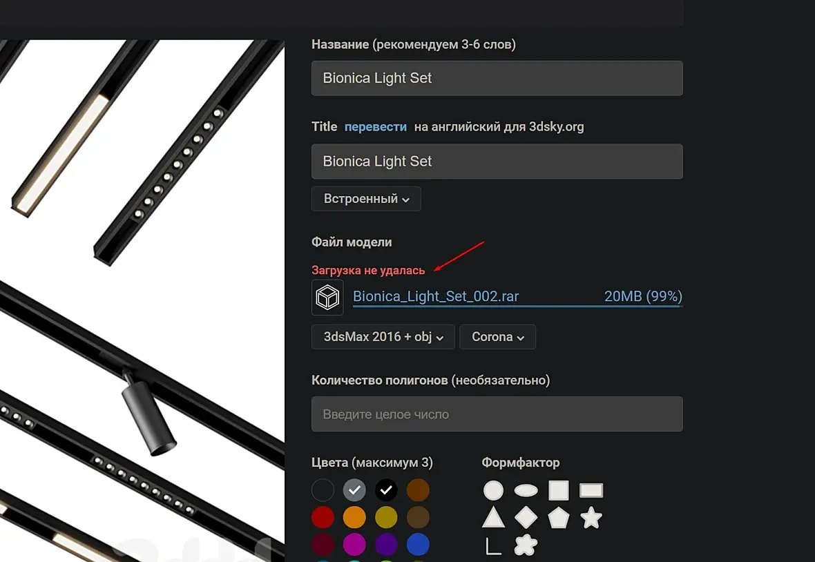 Так же не загружается,написал в техподдержку,но все же,тоже плюсую , и не логинится с другим браузеров , хотя модель ушла на модерацию (у меня в моих моделях ее нету) - модер написал залить снова модель,но я не могу, в загрузке выдает ошибку на 99%