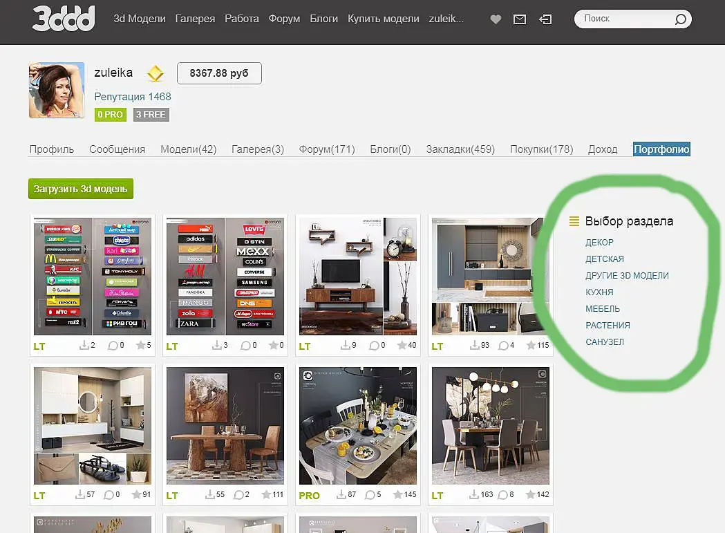 Нечто подобное и у меня..Превъюхи моделей в профиле встали в 3 ряда по вертикали..После попытки переключится на страницу 2..3 да на любую в принципе..Не отображаются превъю..А только меню сверху "загрузить модель"