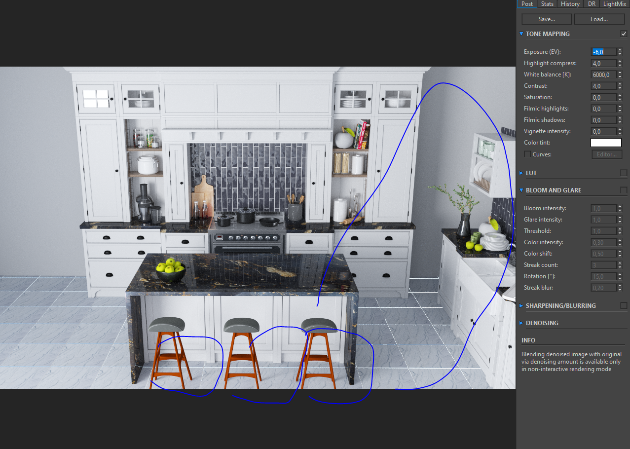 Солнце к окну под прямым углом, оно в помещение тут вообще не светит, светит небо (если подключено) и тот прямоугольный ИС в окне. Непонятно чего хотите добится таким расположением? Для полностью белого освещения Sun sky не нужны, для натурально реалистичного не нужен ИС в окне. Сбросьте все настройки в дефолт и начинайте на сермате свет ставить.