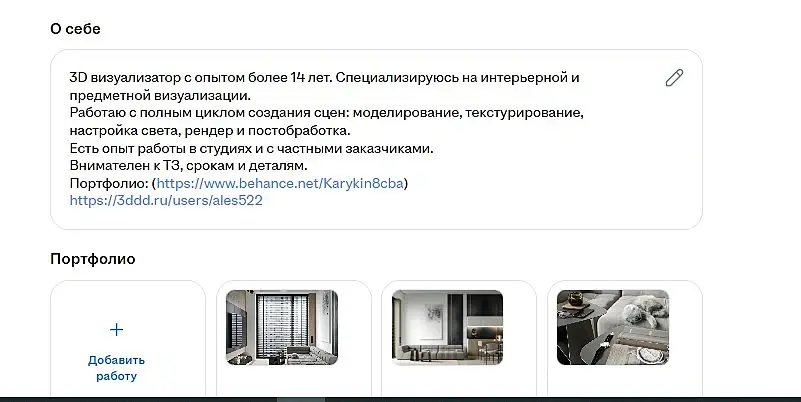 Но суть в том, что поиск работы это почти как потерянная вешь, можно перерыть весь дом, и только в конце найти то что ищешь.Плюс сейчас визуализаторов, наверное, столько же сколько и менеджеров. Может быть стоит не надеятся на галимый **, а попробовать связаться со студиями напрямую, и предложить сотрудничество, возможно стать самозанятым?