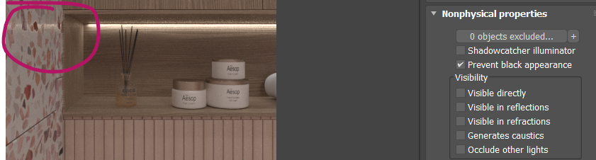 Visible in reflections - если убрано, то это просто отражение. если вы прям совсем не хотите его видеть = хотя это физ корректно. то сделайте exclude у лайта стену