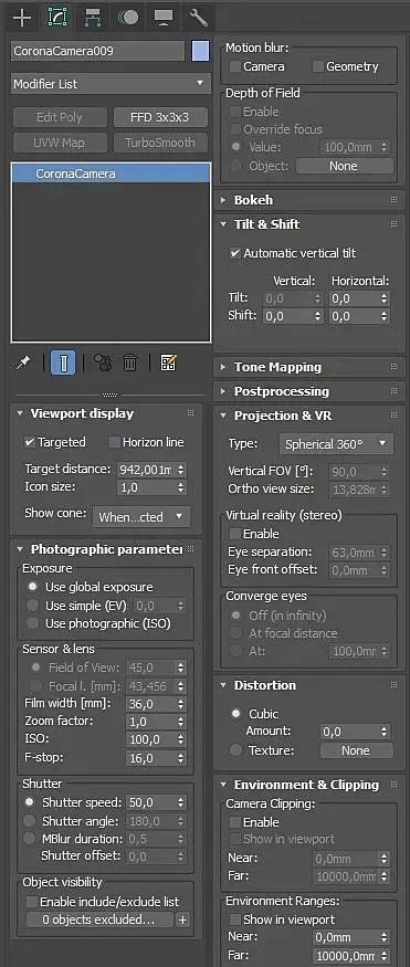 Ребзя, зум как нибудь можно сделать камере при настрйках в vray сферикал 360 ?