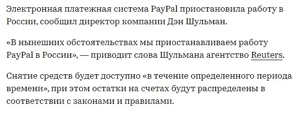 но зарубежный заказчик сегодня не смог отправить перевод, paypal заблокировал платежи на российские счета PayPal
