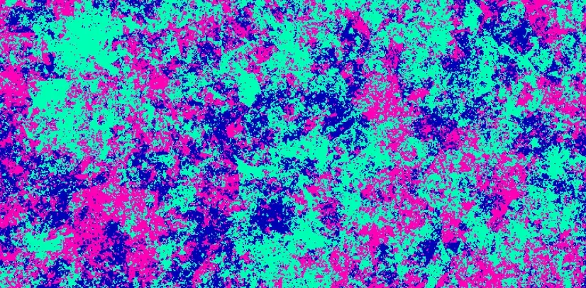 Как я понимаю, конкретный цвет дает просто направление трехмерного вектора нормали, как в этом ролике рисуют на доске, поэтому мне в такой карте имитации вельвета, то есть разного направления векторов нормалей нельзя допускать смешивания этих пятен, это будет создавать видимый рельеф. Тот только четкие края маски для каждого цвета.