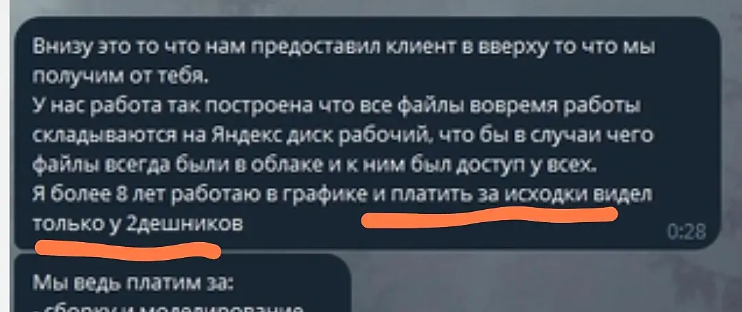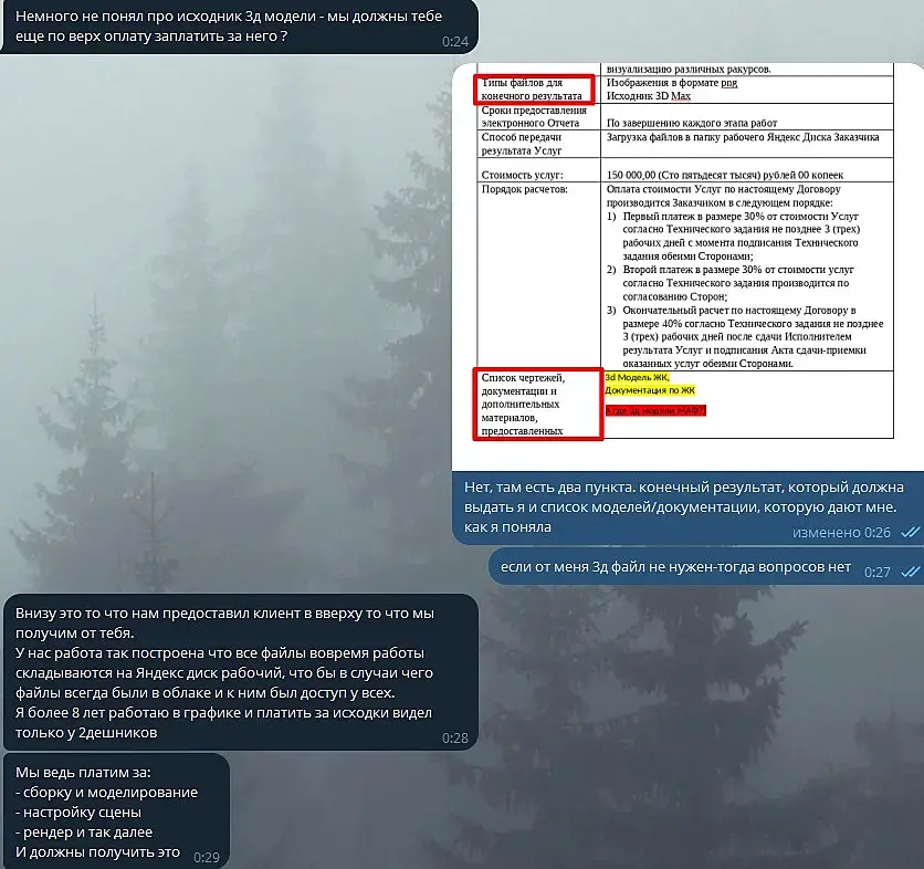 Заказчик считает, что я должна отдать ему сцену просто так. "Мы ведь платим за:- сборку и моделирование - настройку сцены - рендер и так далее. И должны получить это"