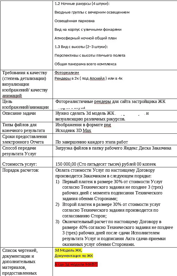 У вас в ТЗ наименование услуг: Создание 3D Визуализации ЖК