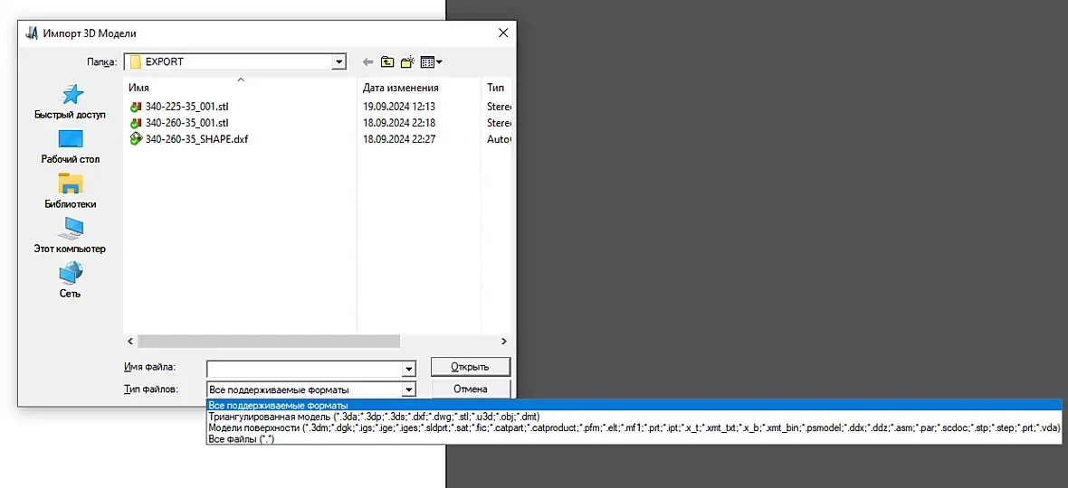 ВНИМАНИЕ! Нужно именно Export, а не Export Selected жмякать! По непонятной для меня причине в Export Selected нет формата STL в списке вариантов