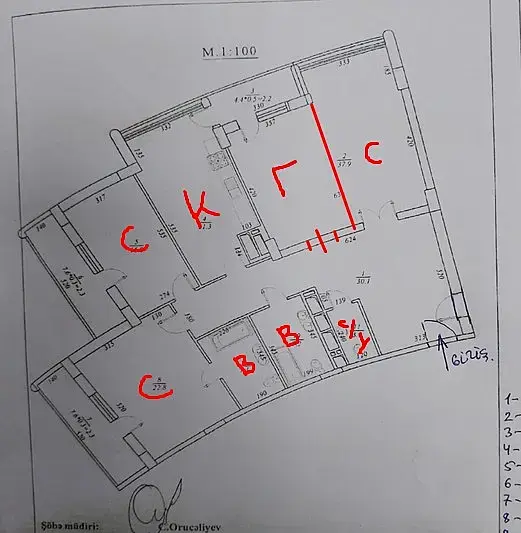 Они хотят отдельно кухню, отдельно гостиную, три спальни и чтобы в одной из спален был санузел. Площадь большая, но пока вижу только варианты с общей кухней-гостиной. Смежных выходов не хотят.