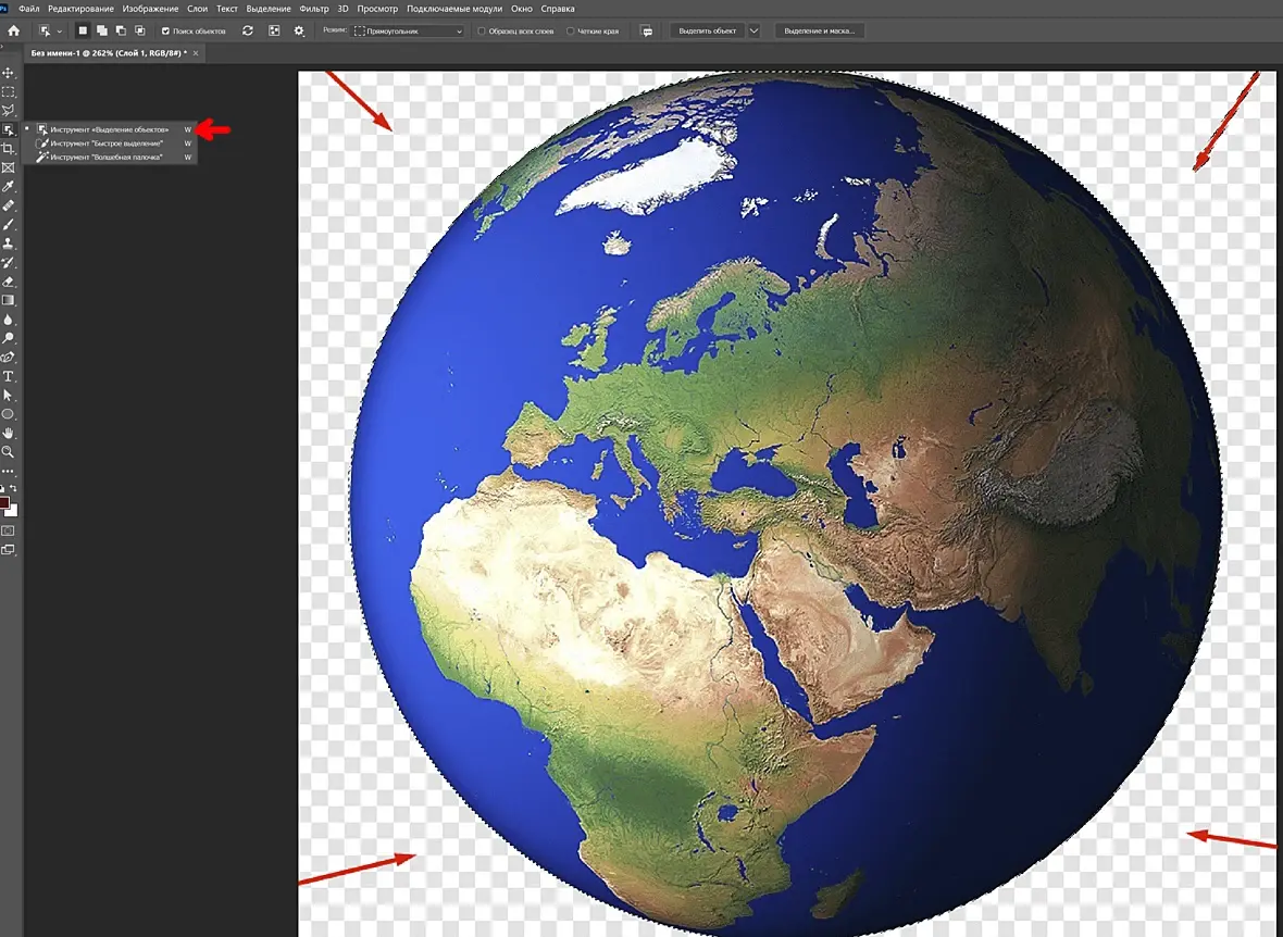 владд, ее не надо переводить в другой слой. Она уже в другом слое. Эта "шахматка" на которую ты показываешь, так в фотошопе обозначается прозрачность. Просто создай слой ниже картинки, помести туда какое-нибудь изображение, и твоя "земля" будет на фоне этого изображения.