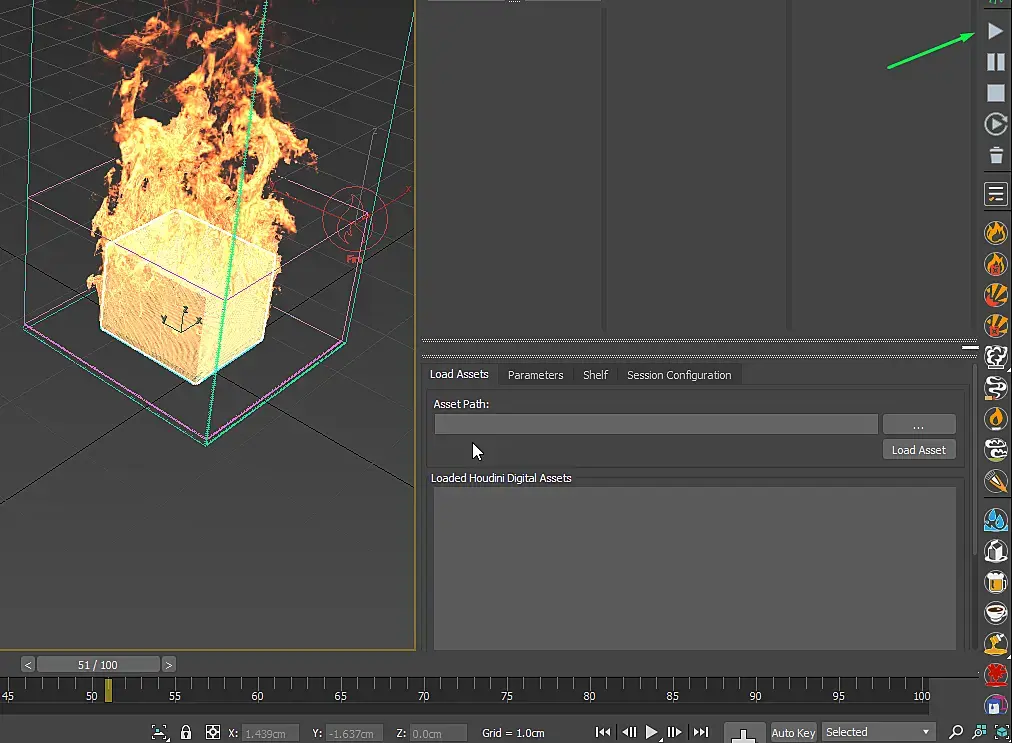 persik_ii, странное дело ) можно посмотреть настройки превью - если там выбран второй-третий пункт, то в течении симуляшки во вьюпорте огня не будет, однако как только запускается рендер, он появляется