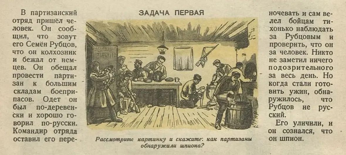 Мне вообще не понятно с чего вдруг среди кучи бойцов которые знают друг друга нужно найти того одного что бы понять что он делает что-то не так... Мол типа они то вон увидели, что он фигню творит. Ну так они за ним наблюдали. А нам предлагается проанализировать поведение их всех? Я так-то скажу, что русских там вообще нет - все мужики в отапливаоемом помещении поголовно в шапках, пофиг, что война... :D
