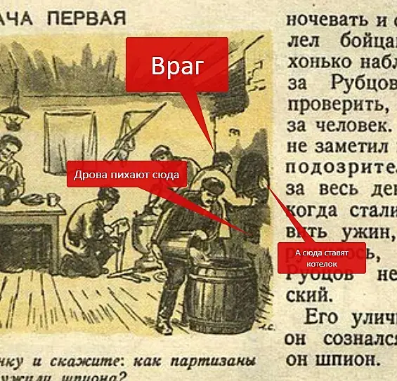 Третий мужик за столом ковыряет котелок. Если он готовит что-то что бы поставить в печь - вопросов нет. Если он уже жрет, то предлагаю в печь засунуть его...