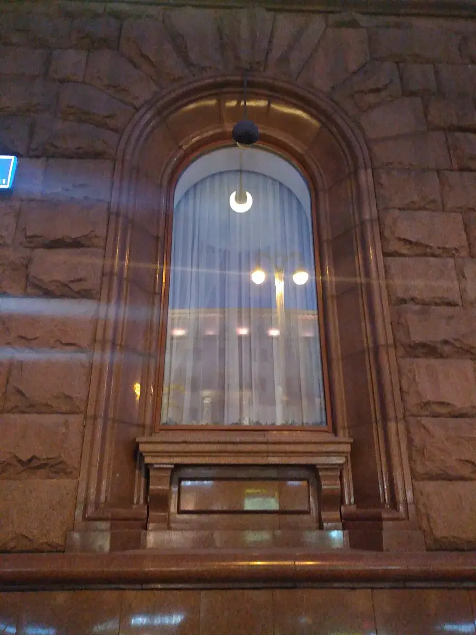 Вчера вечером специально посмотрел, за теми 2-мя окнами, большой зал, светлые шторы висят, свет внутри горит и всё видно.