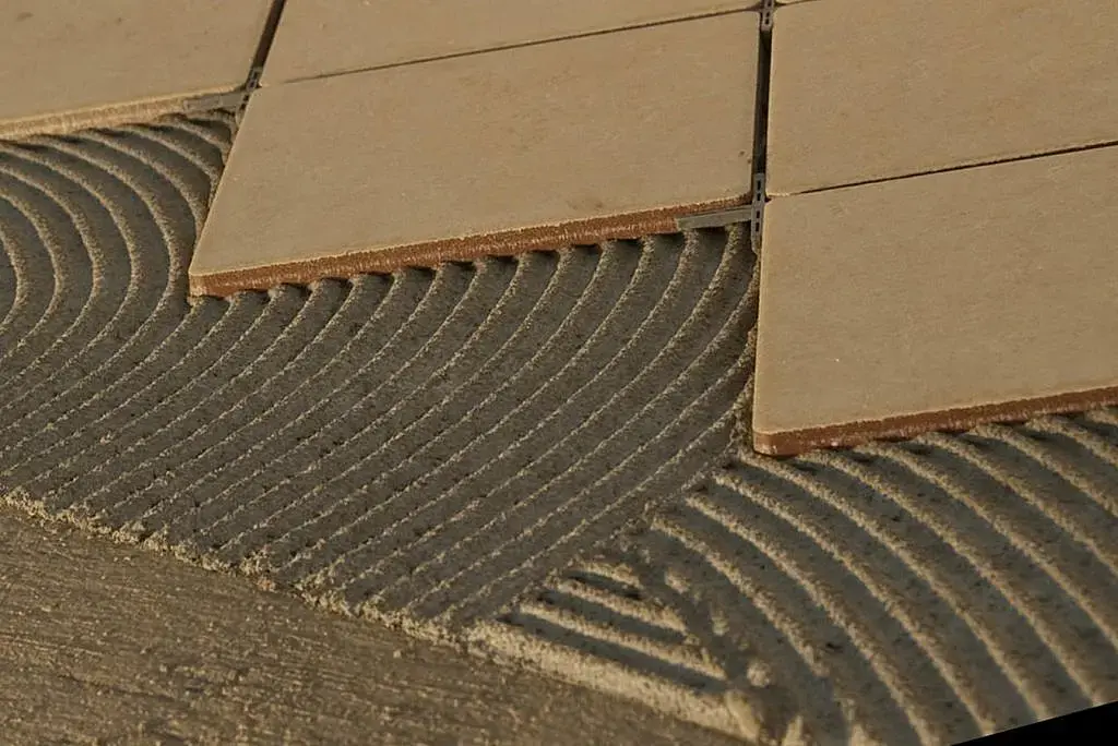 Плиточный клей нанесенный гребенкой