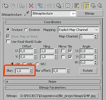 Четкость текстуры зависти от параметра blur, чем значение ниже тем более четкая текстура при рендере. По умолчанию стоит еденица