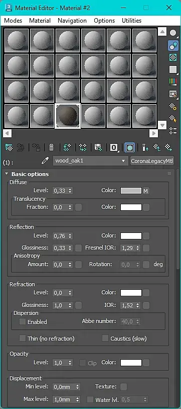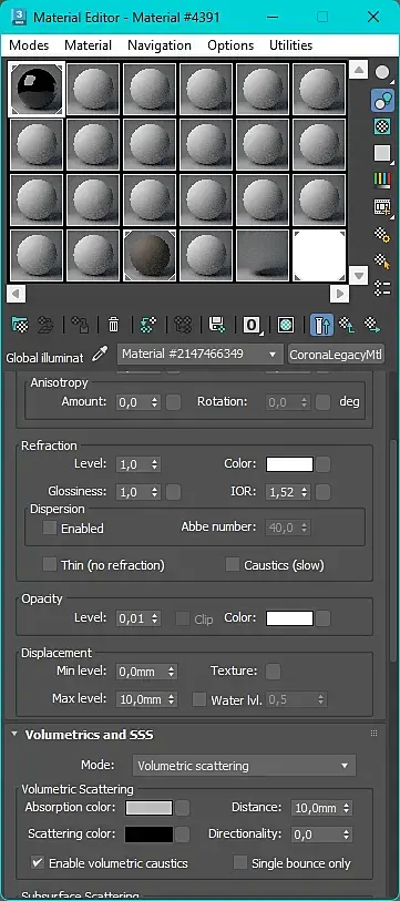 Всем привет, начал сталкиваться с этой проблемой, когда установил связку 2024 макс и корона 12 апдейт 2. Как можете посмотреть на скриншоте с настройками, выставил только reflection и gloss параметры, а материал дерева на двери "Вельветит" под разными углами. и так со многими материалами начал воевать, именно в этой установленной паре.