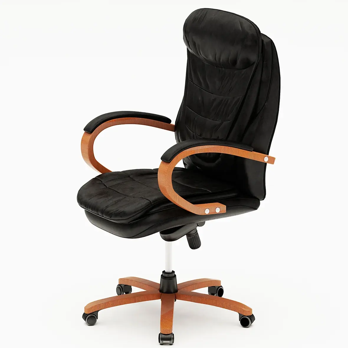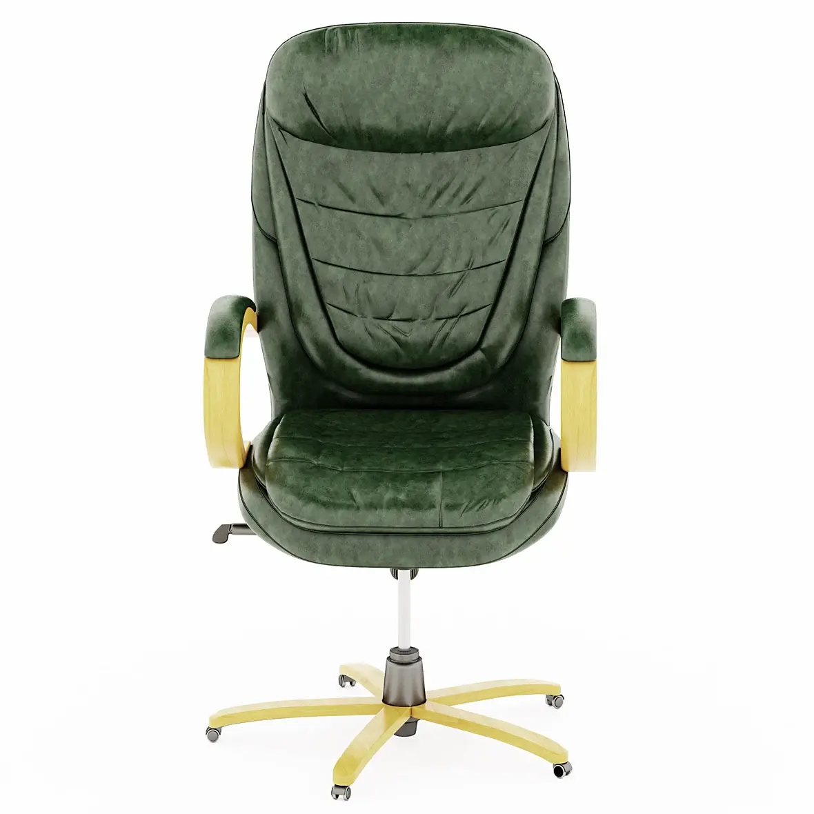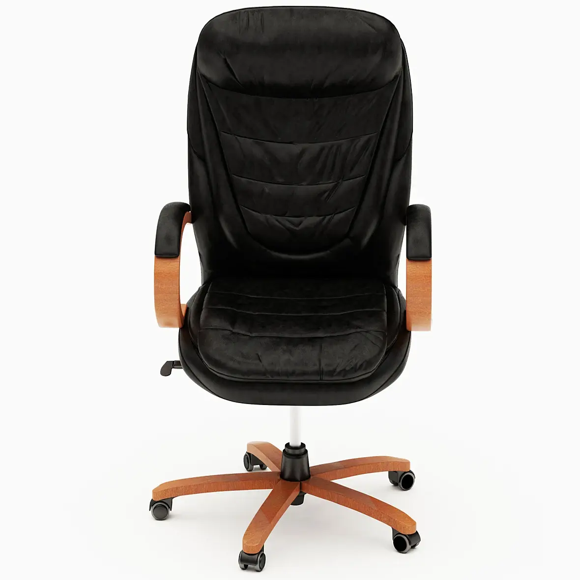 Все материалы нужно переработать , что за блестящая кожа то такая)) оч странные желтые ручки (оригинала не видел конечно) , но все же, нога очень тонкая , сомневаюсь что в реале так же , она тупо сломается как по мне , колеса оч маленькие , странная пропорция , думаю дело в модели , серая модель лучше смотрится , чем с материалами , нужно короче целиком все доработать , гляньте в базе какие стулы , освещение , материалы , подача , на них ориентируетесь , примеров миллион , ну и ориг. стул бы увидеть)