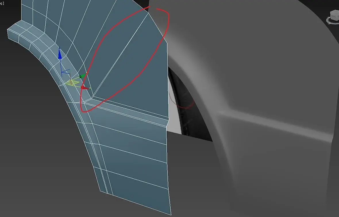 Когда не можете избавиться от косяка коннектов - знайте, у вас недостаточно плотная сетка. По кругу крыла вам нужно примерно в 1,5 раза больше сегментов чем сейчас. а эти 4 коннектные линии перепада - должны плавно переходить в грани арки с одинаковым расстоянием между ними. тогда у вас не будет треугольников и сетка логично завершится