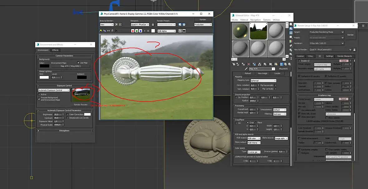 Начал разбираться в освещении HDRI.Скачал и загрузил в макс карту.
