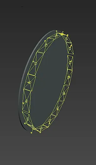Поставить за зеркалом Spline - Cirlce, радиусом чуть меньше зеркала. У него в свитке Rendering поставить галки на Enable in Renderer и Enable in Viewport - и чуть ниже указать ему толщину Thickness.