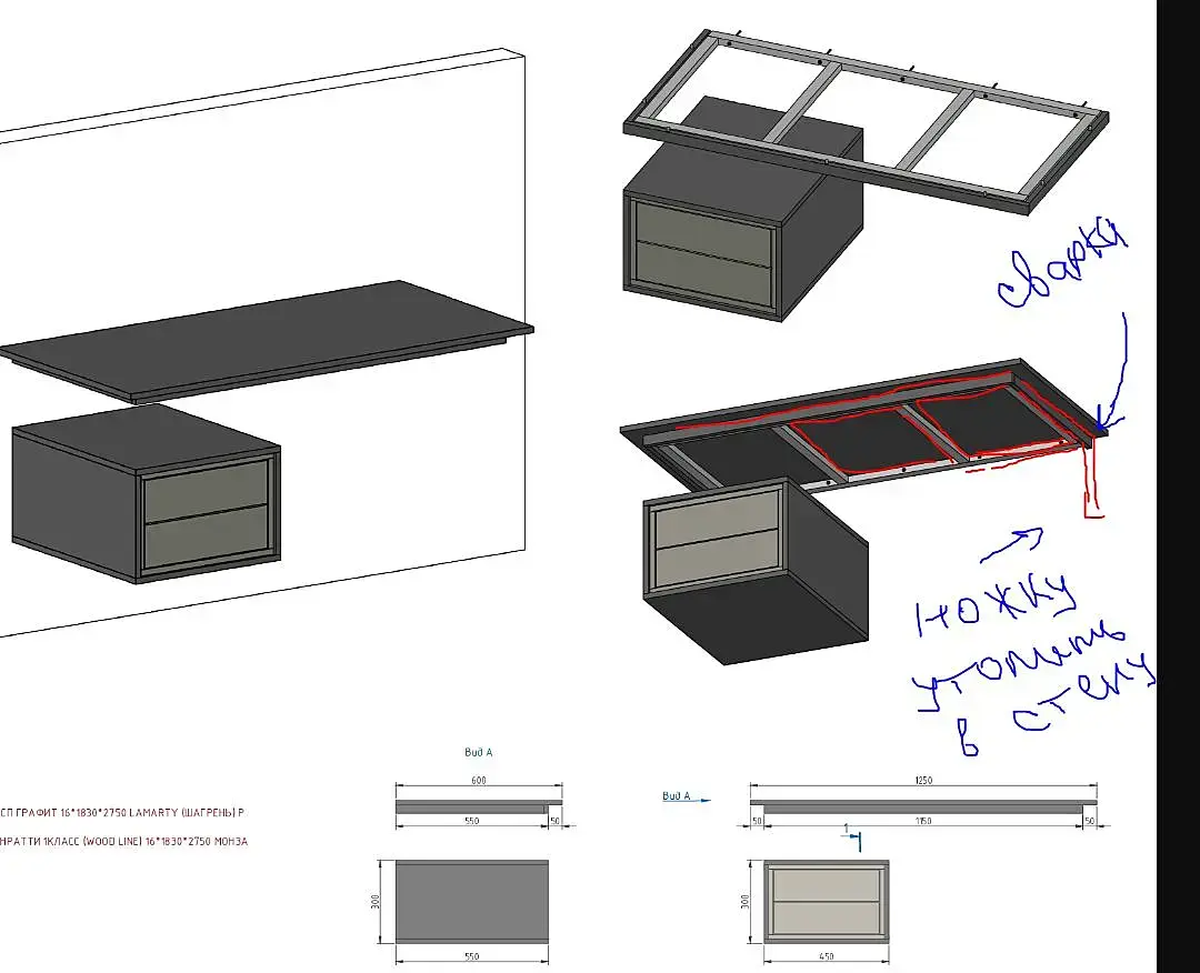 Еще изучите существующие системы крепления подвесных конструкций, но там столешница должна быть потолще (если потолще, то и можно кронштейн под эту толщину поставить).
