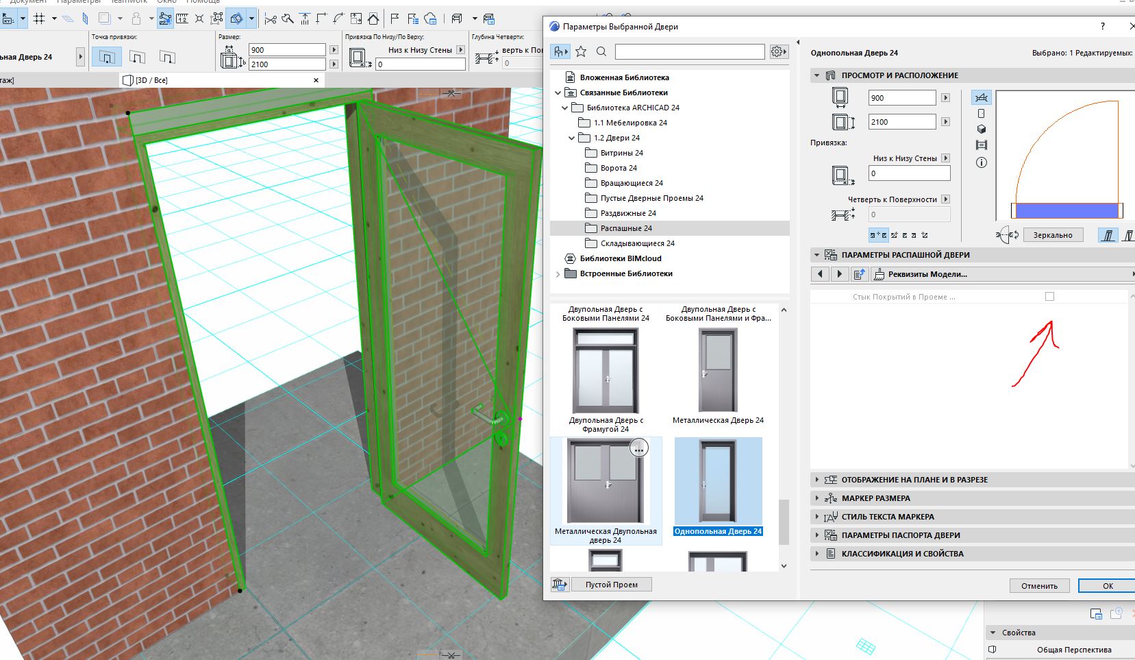 Надо копать в параметры самой двери. Где-то полюбас есть нужная галочка. Сколько не ковырял, у меня не разделяет так дверь покрытие. Но может это оно на картинке? Еще вариант, попробовать поставить дверь из другой библиотеки.