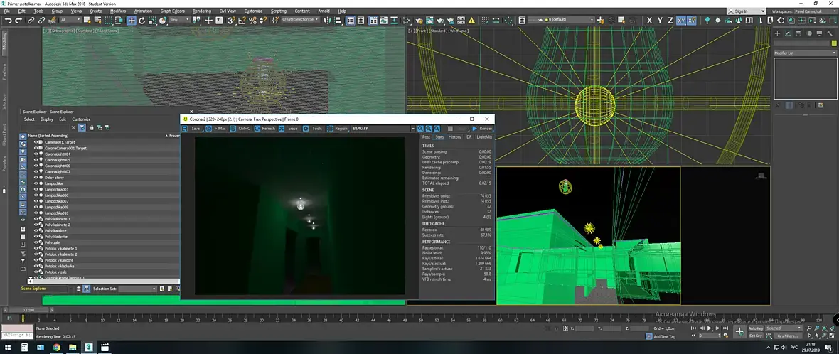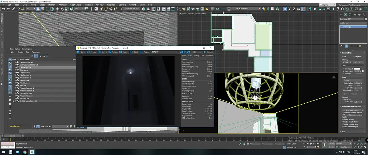 Подскажите почему у меня такой тусклый и не реалистичный свет? Corona light 100ватт, 4 шт, цоколи пробовал убирать, источники сферические 1 см, свет дефаулт, материал стен и пола все параметры средние. Системы свечения отключены( пробовал дабавлять, но не помогает)