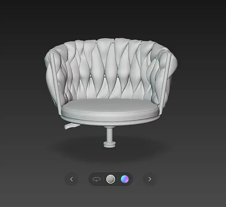 В нано банана создается 4-5 видов стула и грузится в хуньянь в режиме загрузки проекций, возможно надо сделать несколько вариантов. Низ можно взять от https://3ddd.ru/3dmodels/show/adrianna-office-chair (если он генерится некорректно)