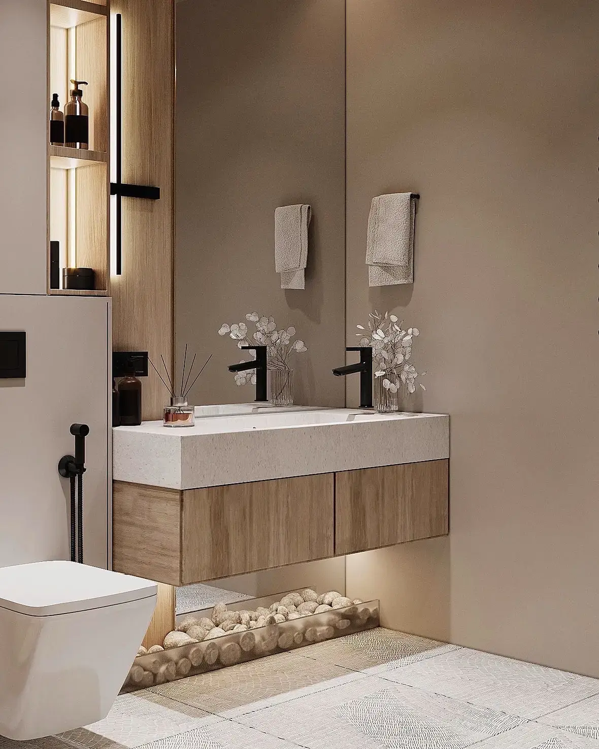 Здравствуйте. Заказчик прислал референс, кто знает, что под раковиной? камушки? деревяшки? гигантские корни имбиря?